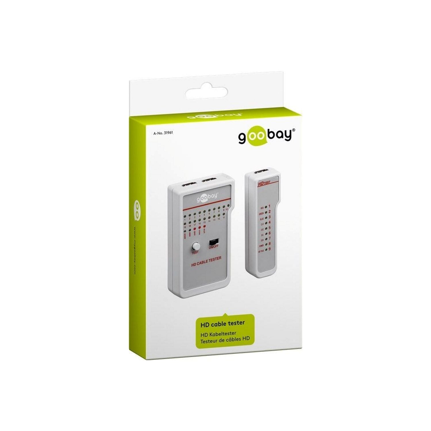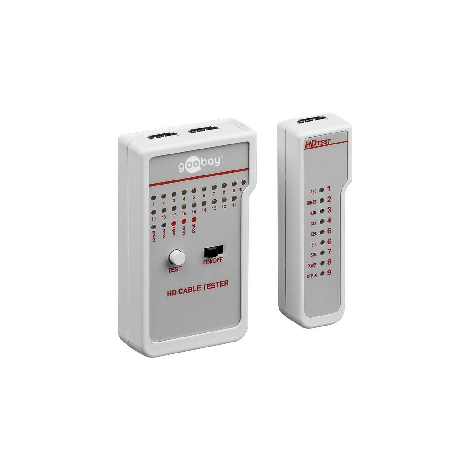 HDMI Kabeltester, Verbindungstester für 19 Einzeladern und AbschirmungenDieser praktische HDMI Kabeltester verfügt über zwei Bedienteile, sowie über optische und akustische Signaleinrichtungen, und ist ideal zum Testen bereits verlegter Kabel geeignet. Die Stromversorgung erfolgt durch 9 V Blockbatterie (nicht im Lieferumfang).