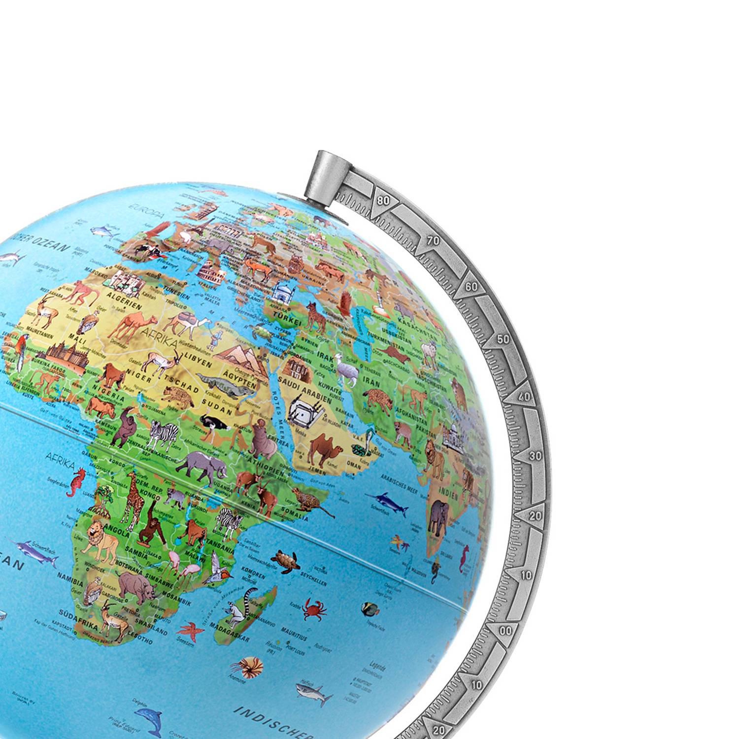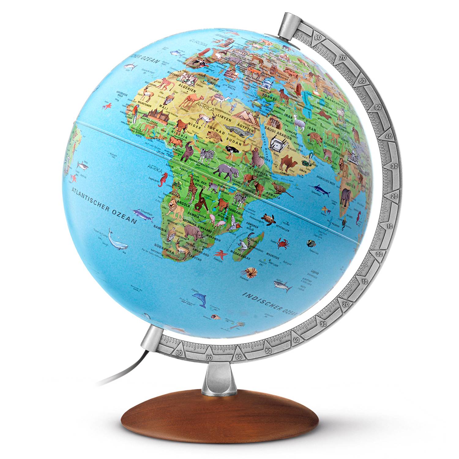 Räthgloben Kinder-Leuchtglobus, Doppelbild, 30 cm Durchmesser, 39 cm Höhe, mit BegleitheftDieser Leuchtglobus wurde speziell für Kinder konzipiert. Das Kartenbild zeigt liebevoll gezeichnet, die regionenspezifische Flora und Fauna. Mit einer kindgerechten Höhe von 39 cm und einem Durchmesser von 30 cm, passt dieser Globus in jedes Kinderzimmer, um Ihrem Nachwuchs unseren blauen Planeten näher zu bringen. Die Beschriftung ist in gut leserlichem Deutsch verfasst. Auch als Nachttisch- oder Gute-Nacht-Beleuchtung eignet sich dieser Leuchtglobus hervorragend. Im Lieferumfang ist ein informatives Begleitheft, mit Erklärungen zu den unterschiedlichen Abbildungen, enthalten.